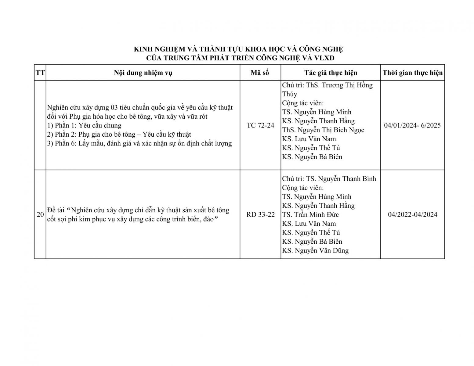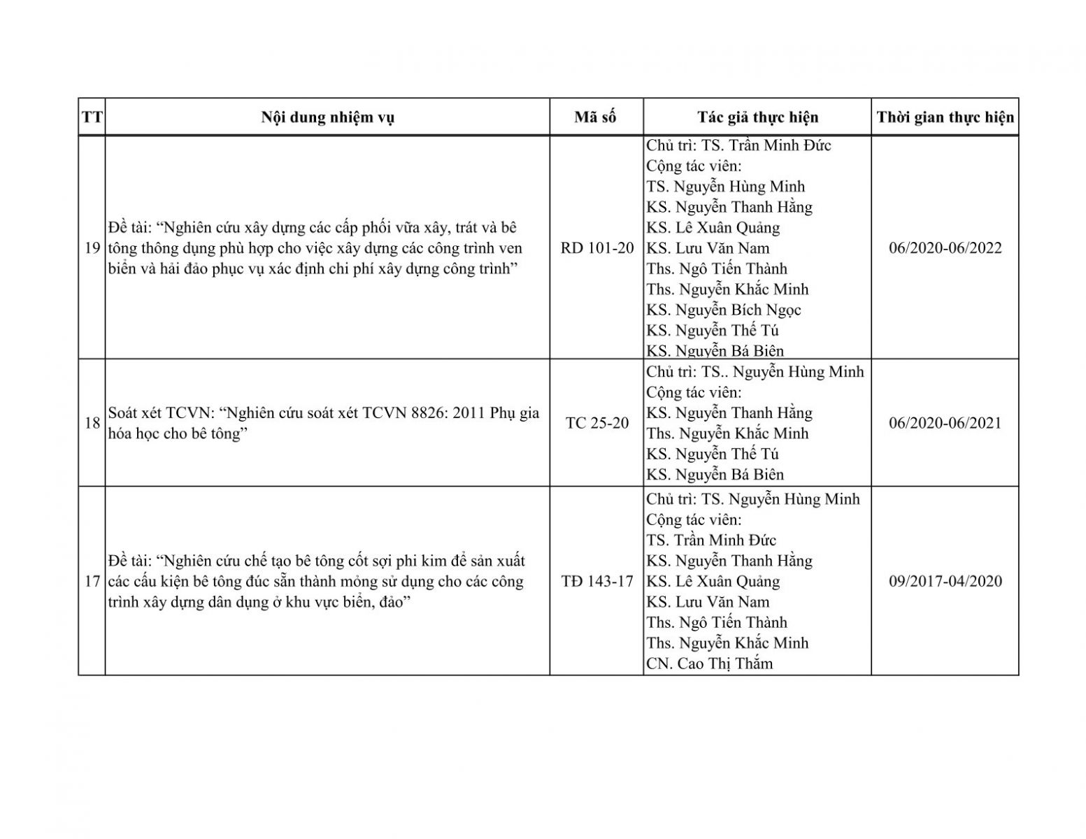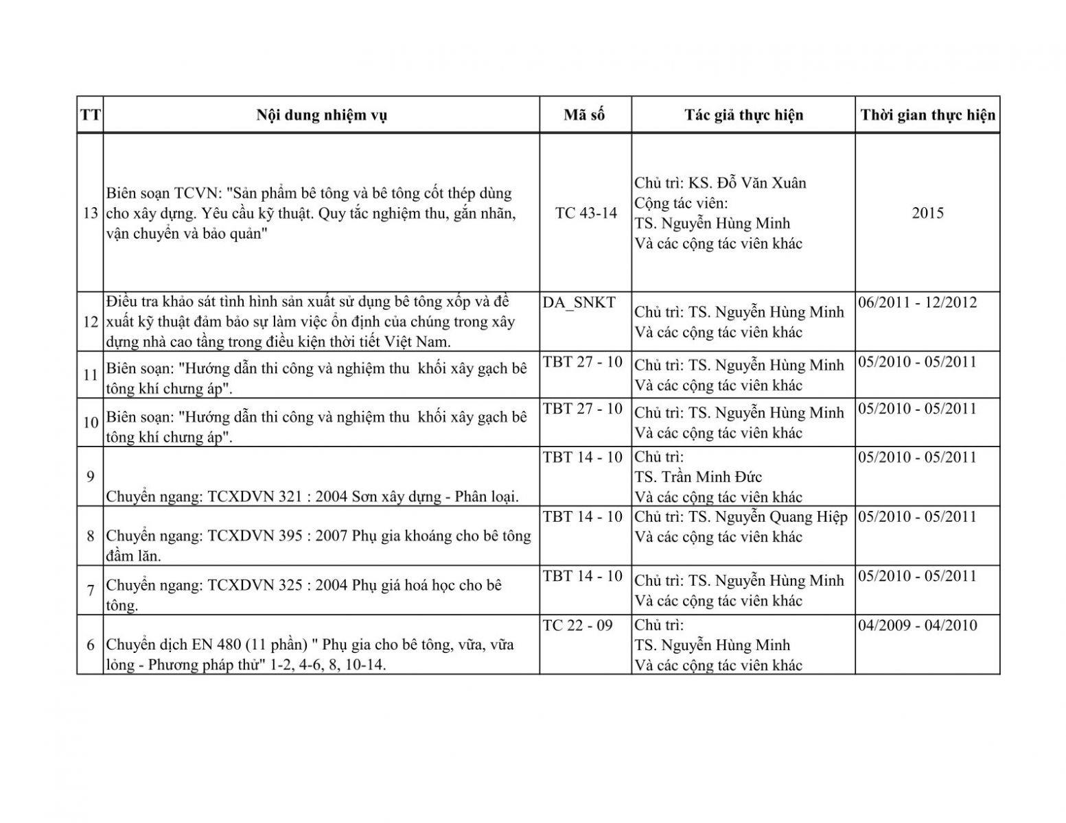 Danh mục các công trình đã kiểm định