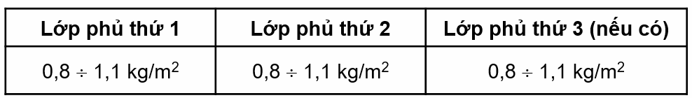 ⁃ Lớp phủ thứ 1 sau lớp lót ít nhất 5 ÷ 6 giờ tùy vào điều kiện thời tiết cụ thể.