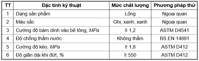BẢNG THÔNG SỐ KỸ THUẬT CỦA VICTAⓈLASTIC PU